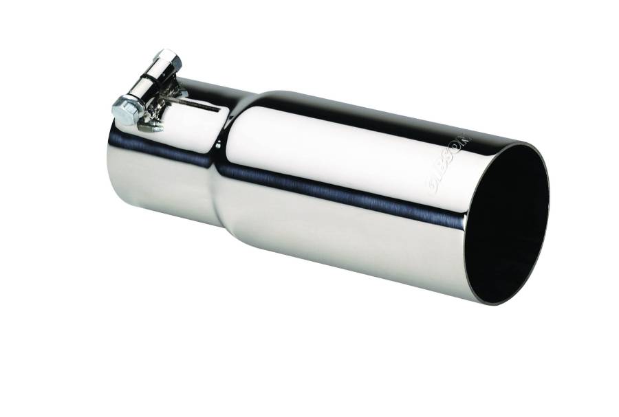 - 3.50in. Polished T304 Stainless; Round Slash- Cut Tip; Clamp on.