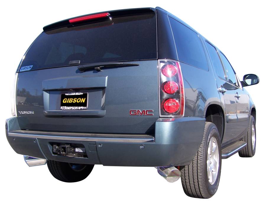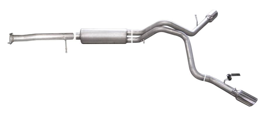 For the extremist who wants to take their truck to the next level, this dual bolt-on Cat back system is for you. This system exists behind the rear tires at an aggressive angle with a powerful exhaust tone. You will gain bold street looks with powerful dyno tuned and tested street performance gains. You can expect to experience gains on average of 15-20 horsepower. Gibson muffler provides a mean performance sound and complemented with polished Stainless Tip. Easy bolt-on installation. No welding required. Backed by a Lifetime Limited Warranty. If you want Extreme, this system is it.